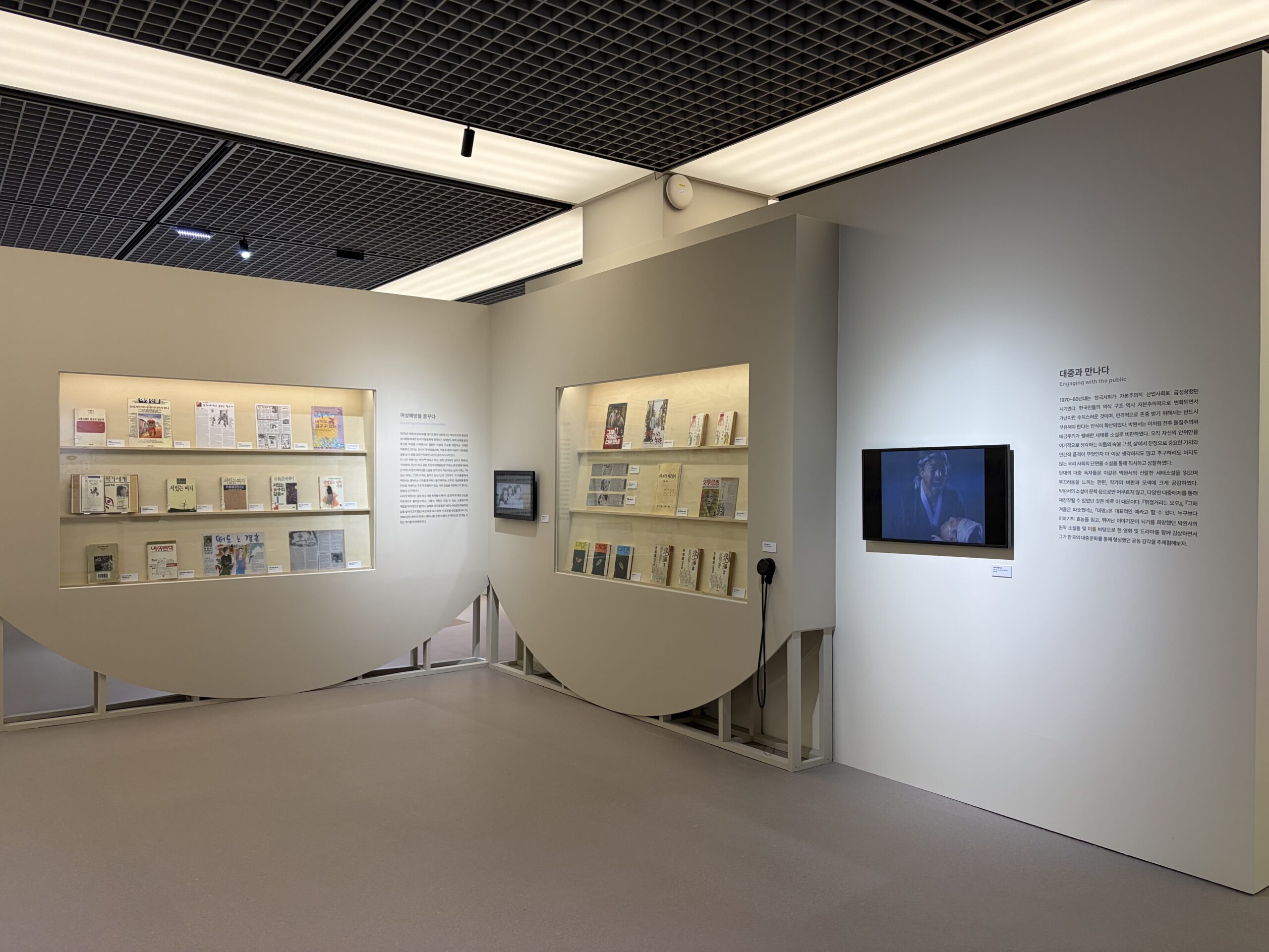 다음으로 ‘대중과 만나다’에서는 전쟁의 폐허를 딛고 급속하게 성장한 한국 사회에 불어닥친 물질주의 풍조와 중산층의 이기심을 비판하고, 건강한 자본주의의 가능성을 탐색하면서 다양한 대중매체로 재창작된 박완서 문학의 대중성을 재평가한다.