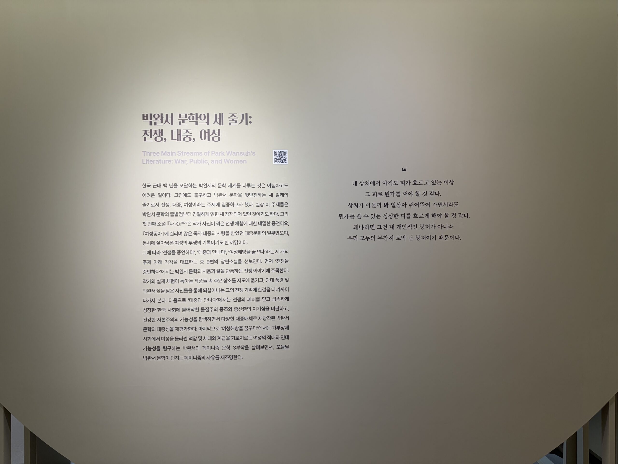 전시장소 중앙도서관 본관 4층 서울대학교 헤리티지 라이브러리 박완서 아카이브 및 아카이브/전시 공간