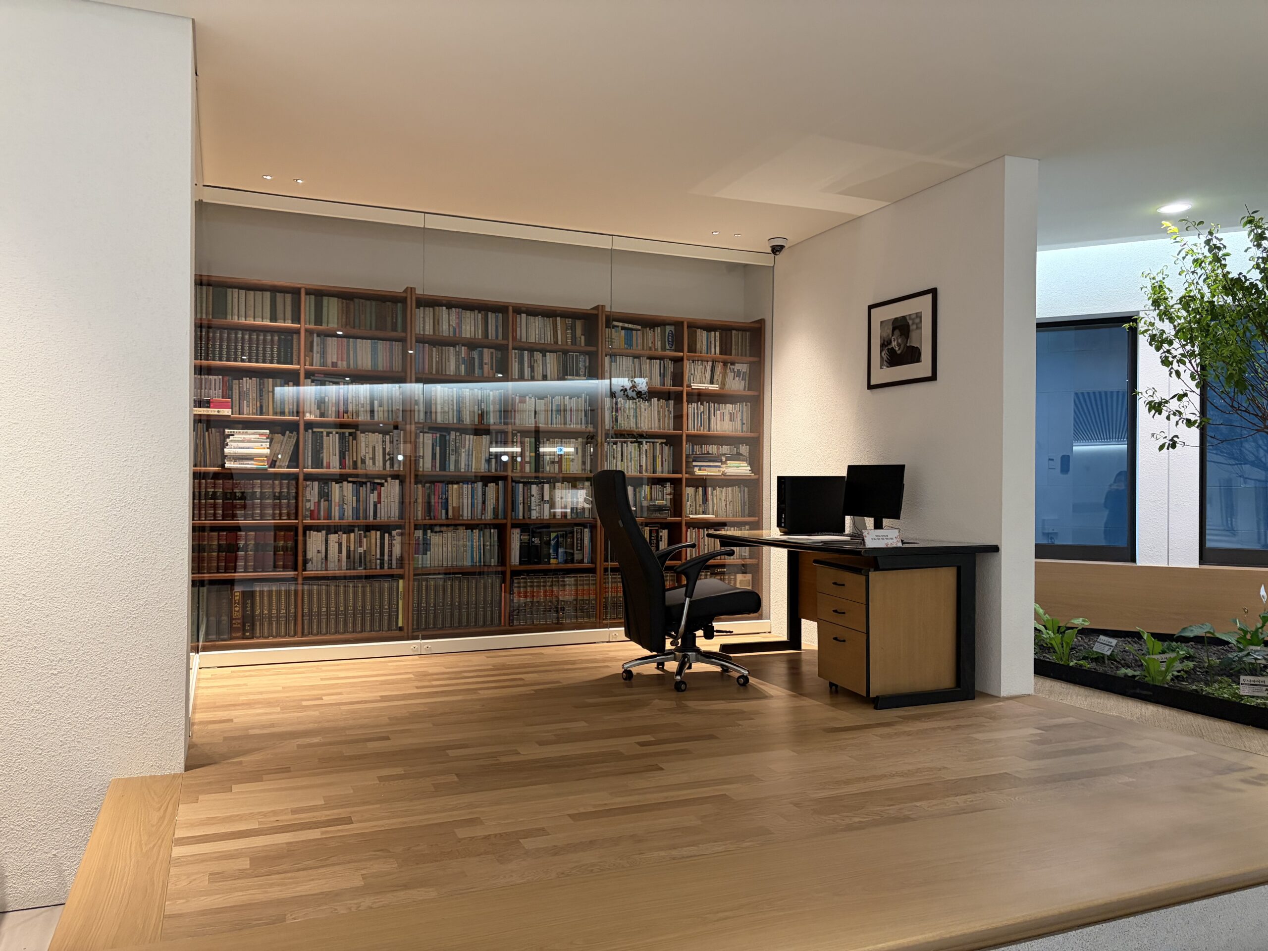 특히 ‘노란집’ 서재에는 작가가 실제로 소장하던 장서와 책상·의자 등 가구 등 집필 환경을 이루던 집기를 그대로 옮겨와 재현하였다. 또한, 사진 액자 등 일부 자료는 복제본을 제작해 전시함으로써, 원본의 보존성을 강화하는 동시에 공간 재현의 완성도를 높였다. 자택 마당의 정원은 살구나무 등 작가의 삶과 기억을 상징하는 식물들을 중심으로 실내 정원 형태로 구성하여, 작가의 일상과 문학 세계를 보다 생생하게 조망할 수 있도록 기획되었다.